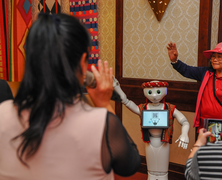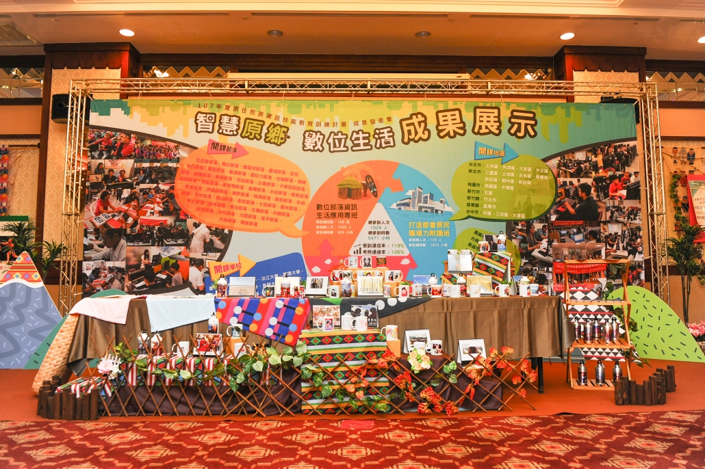 協助原民會舉辦計畫成果發表會暨頒獎典禮,今年的活動特別增加時下最熱門的AI機器人接待貴賓(著族服、說族語),並結合寶可夢的擴充實境(AR)概念,讓學員於會場內可蒐集16族代表物之尋寶活動,整個活動會場中將體驗智慧科技的樂趣,也融合了原住民的文化傳統元素。